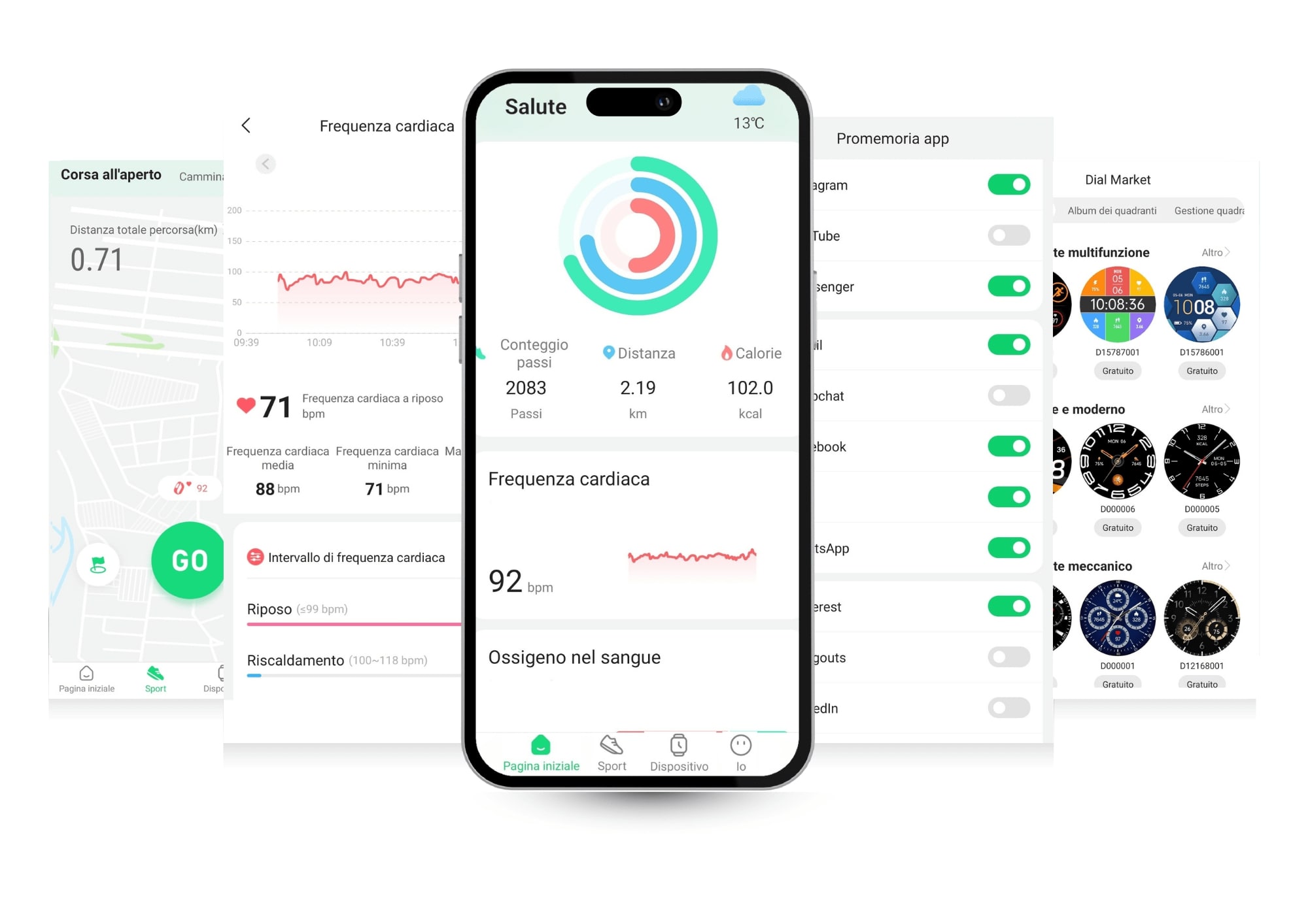 Il vantaggio principale dello smartwatch è il GPS, che traccia con precisione l'attività fisica. I dati vengono sincronizzati con l'app che, come il menu dell'orologio, è interamente in lingua italiana. Grazie alla certificazione IP68/3ATM e al corpo resistente, è resistente ad acqua, pioggia e polvere.